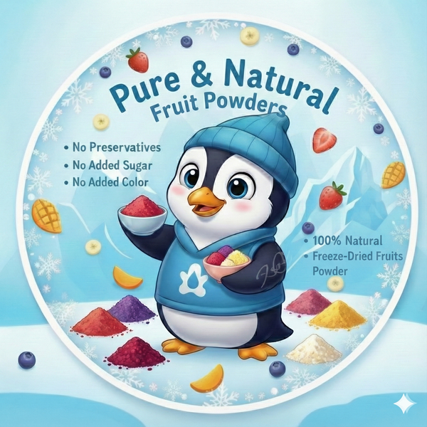 So he gathered the freshest fruits, freeze-dried them with his frosty magic, and turned them into instant, real-fruit powders just for you!